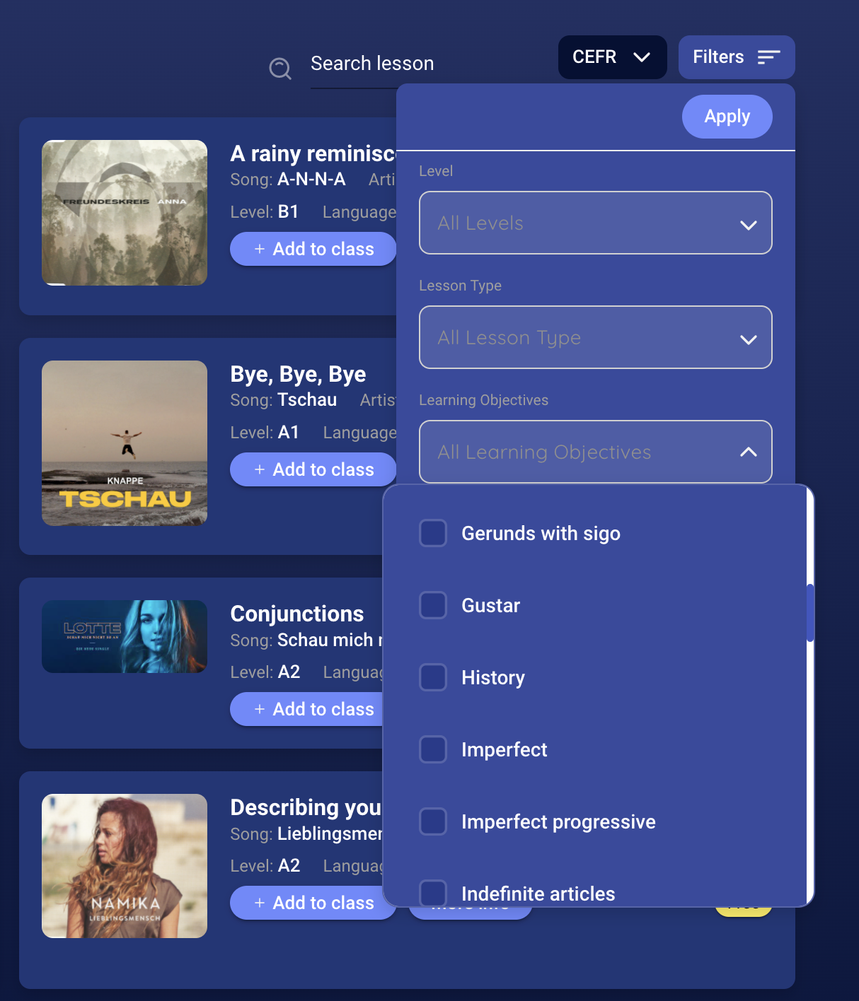 Whether for homework, extra credit or further learning, Lirica lessons are a great resource for teachers to integrate music into their teaching toolkit. Simply sign up, follow the steps below and get your students singing along to their target language today!